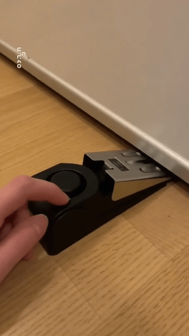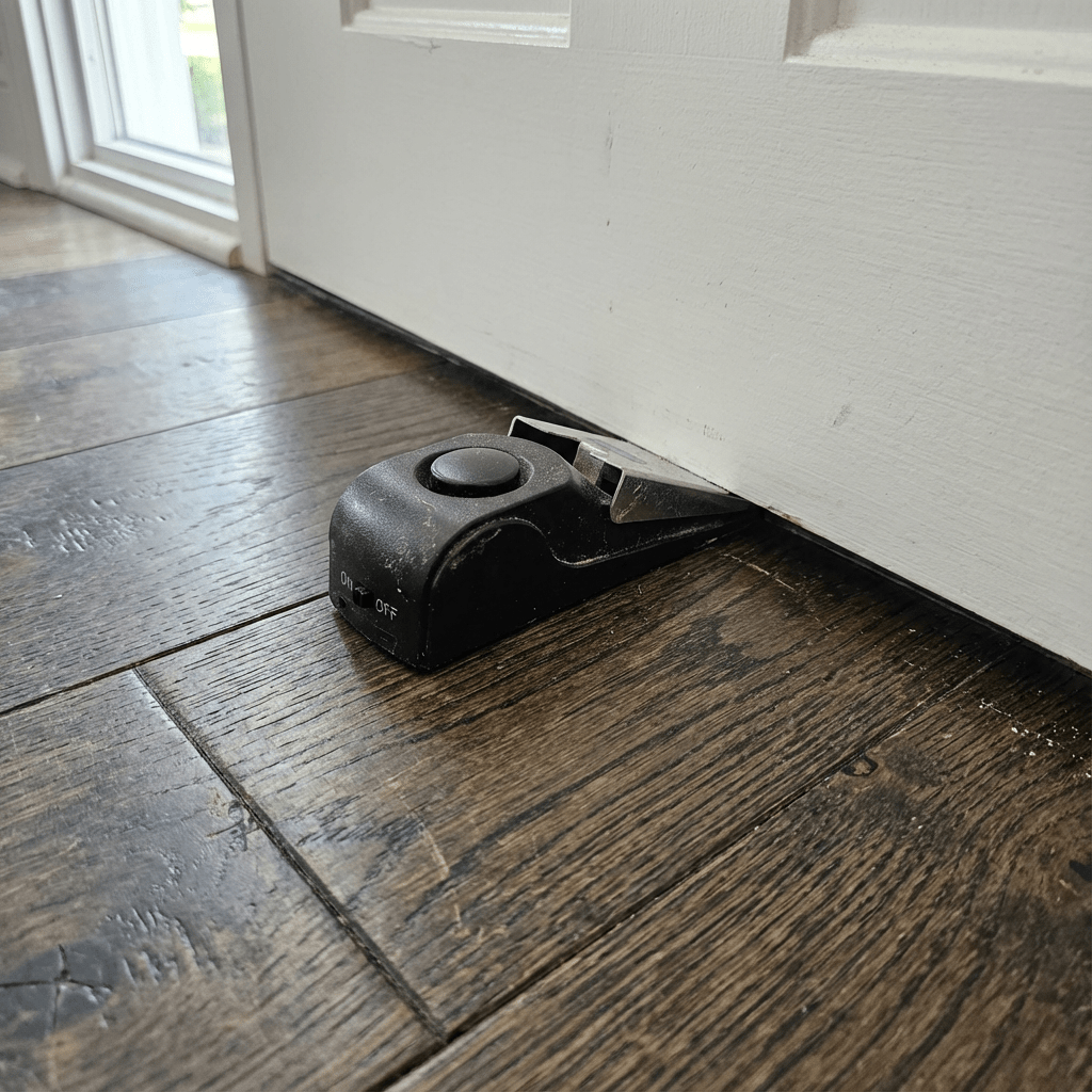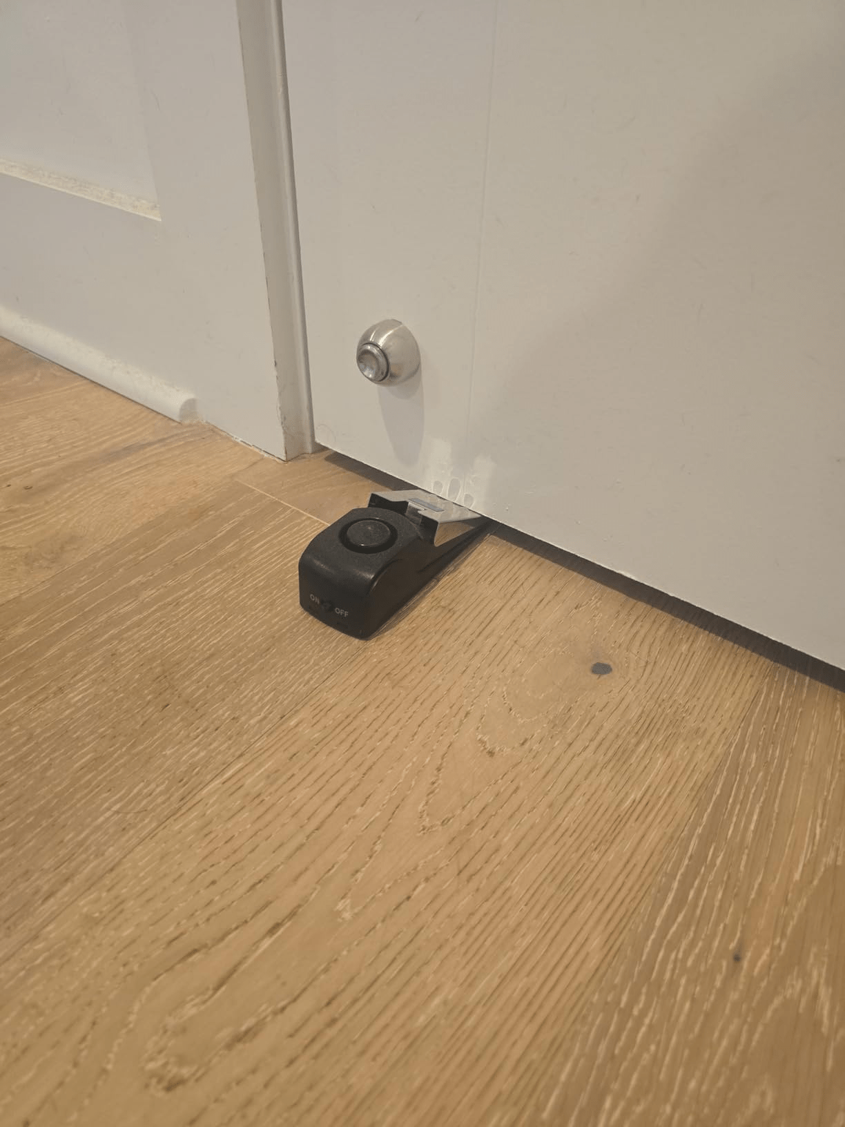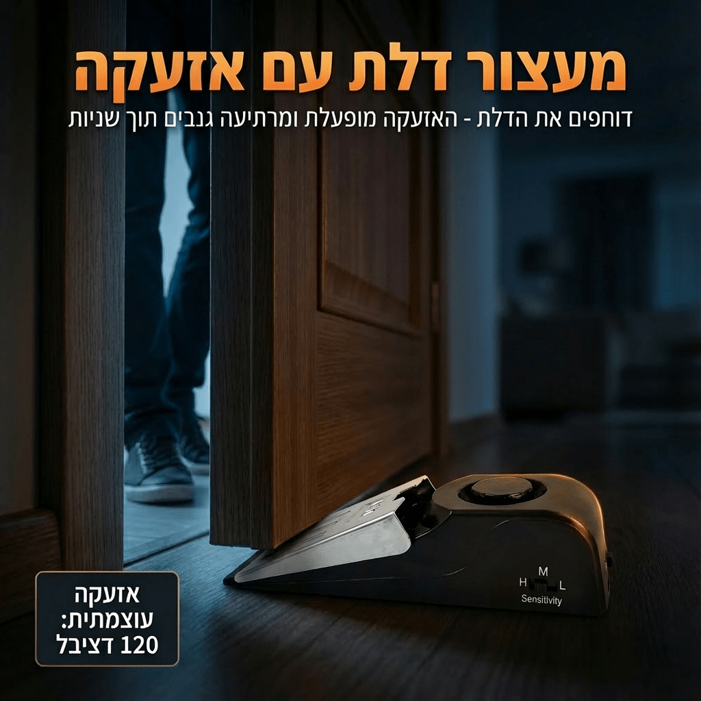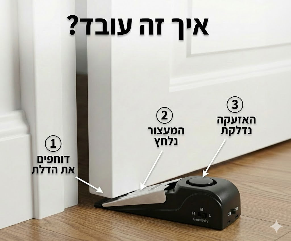 מכניסים את המעצור מתחת לדלת מהצד הפנימי, מדליקים, וזהו. אם מישהו מנסה לדחוף/לפתוח - הוא נתקל במחסום ומופעלת אזעקה.